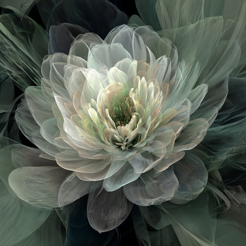 This is a high-resolution digital artwork featuring a highly detailed, stylized flower, characterized by its...