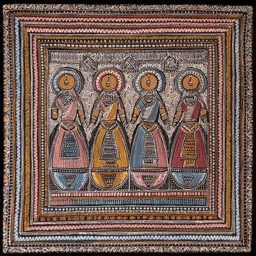 Traditional Indian Folk Art (Madhubani/Mithila): Characterized by intricate line work, geometric patterns, and complete utilization...