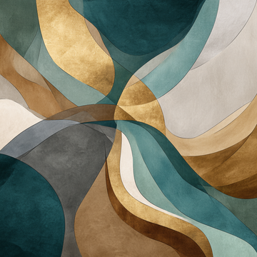 Modern abstract art with a focus on fluid, organic shapes.Dominated by deep, luxurious jewel tones...