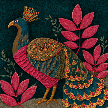 Highly decorative and stylized, drawing inspiration from traditional Indian, Persian, or Eastern European folk art,...