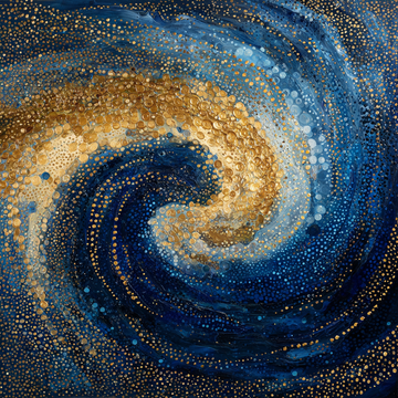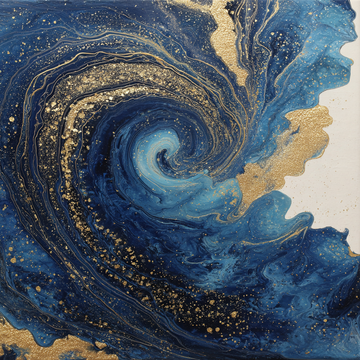 Abstract fluid art, specifically resembling resin pour art or acrylic pouring, characterized by the blending...