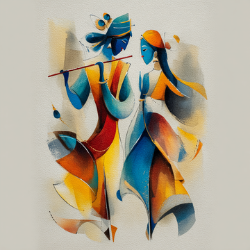 A minimalist and elegant depiction of the divine couple, Radha and Krishna, rendered in a...