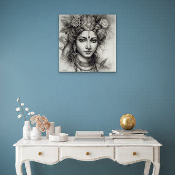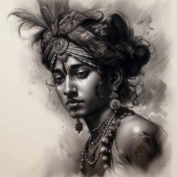 Bring home the divine presence of Lord Krishna with our stunning pencil sketch portrait print....