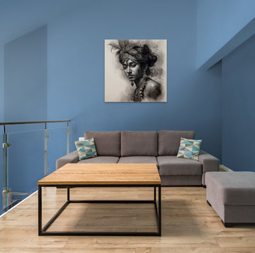 Introducing the "Divine Monochrome" print featuring a stunning charcoal sketch of Lord Krishna on a...