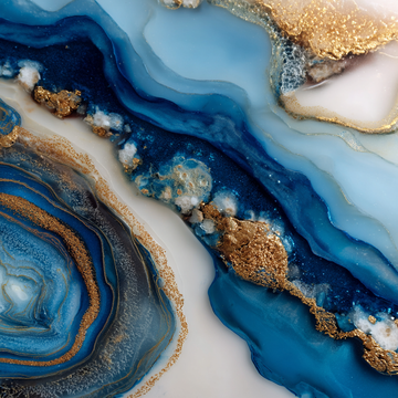 A highly textural, abstract painting depicting a large, cresting ocean wave.The color palette is dark...