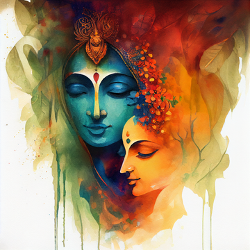 Bring home a piece of divine grace with this modern watercolor portrait print of Radha...