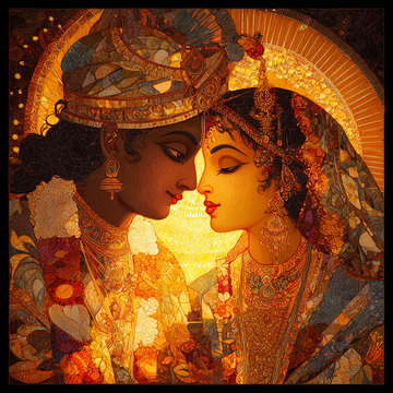 This is a highly unique, stylized portrait of the divine couple, characterized by a digital,...