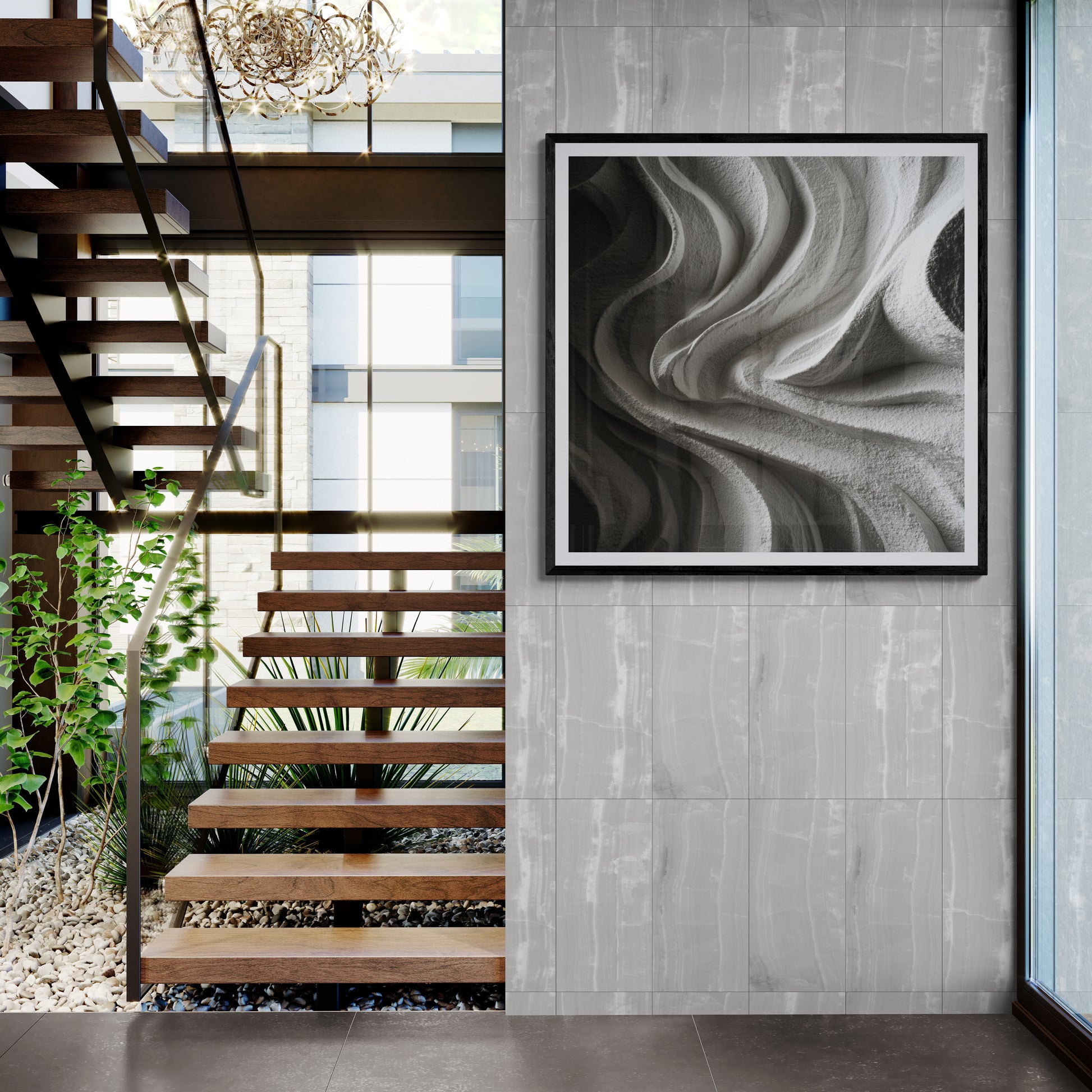 Featuring flowing sculptural curves and layered tonal contrast, this statement modern sculptural canvas creates the illusion of carved stone and soft architectural waves. The monochrome palette positions it as timeless neutral abstract wall art that complements both minimalist and luxury spaces.