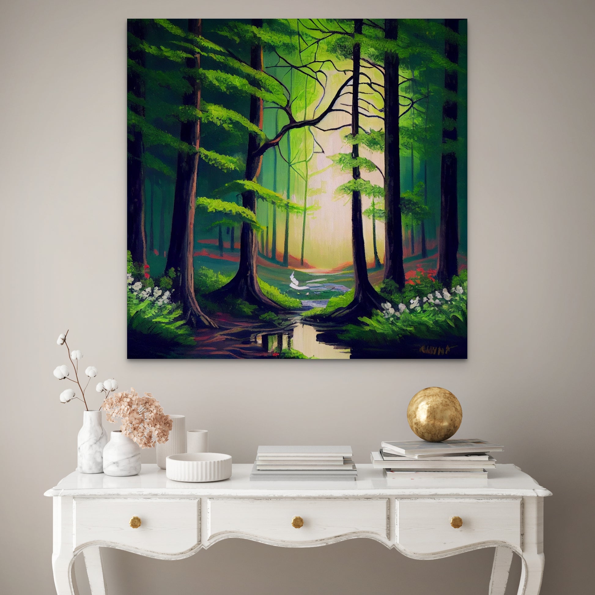 Print of Beautiful Evergreen Forest with Wild Flowers Around: Adding Natural Serenity to Your Space
