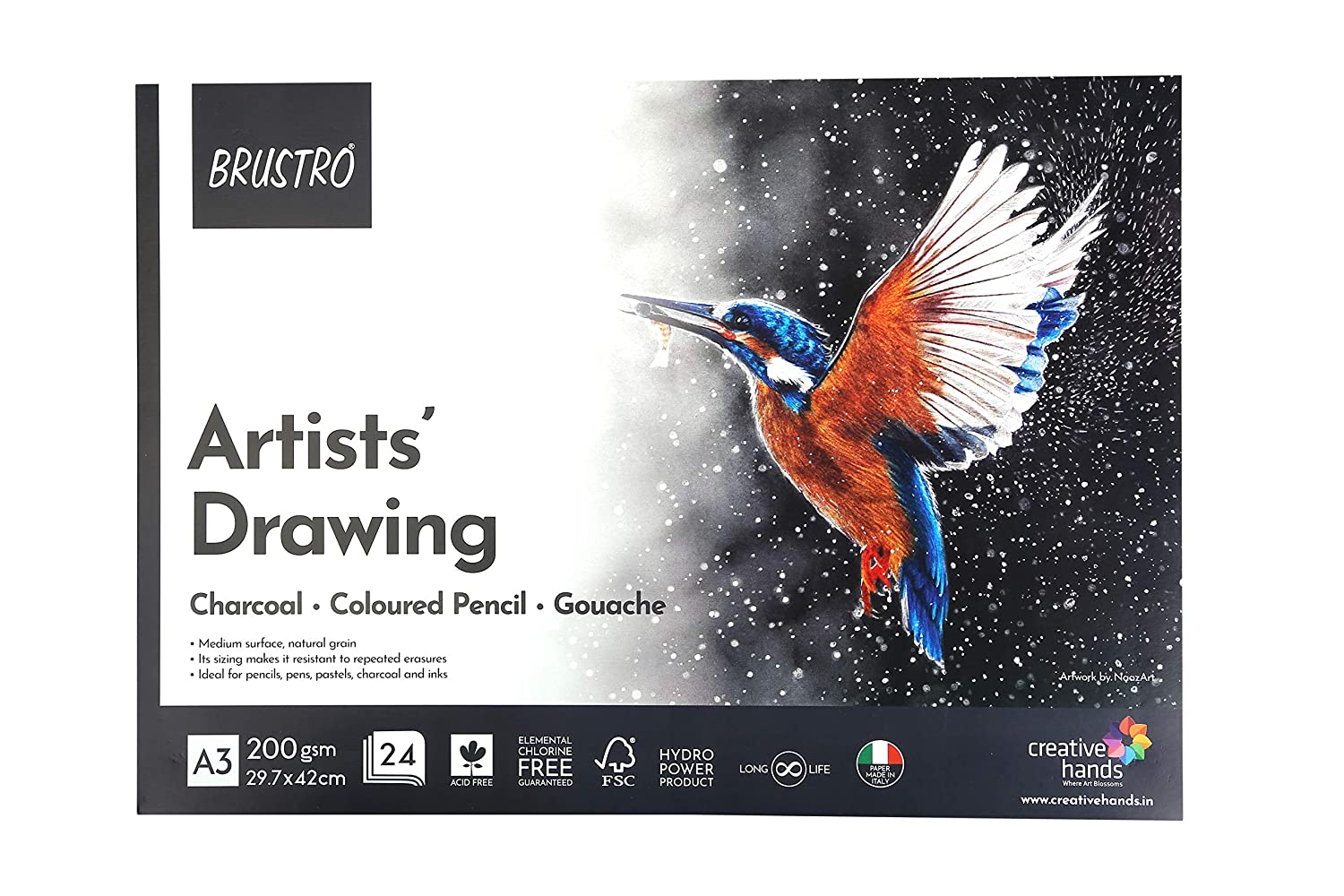 BRUSTRO Artist Drawing Glued Pad 200 GSM, A3, 24 Sheets