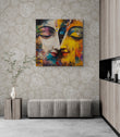 The style is reminiscent of contemporary abstract expressionism or modern spiritual/Indian devotional art, focusing on color and texture to evoke emotion.