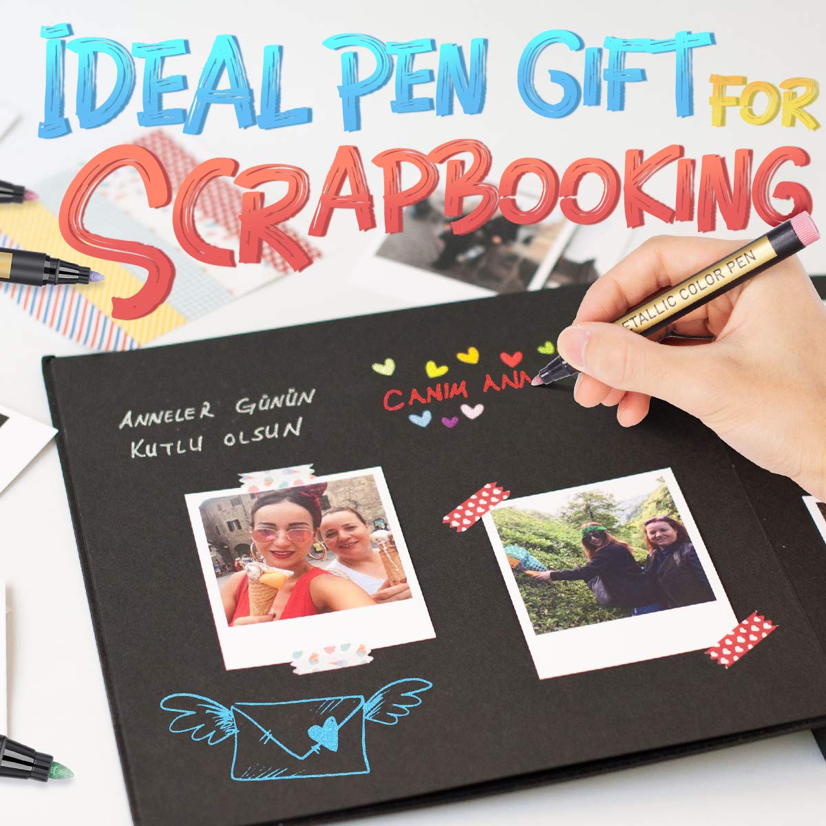 1. To thoroughly mix the metallic ink, shake the marker pens up and down several times while keeping the cap on;