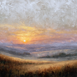 A serene, sweeping landscape scene, likely depicting a valley or rolling hills at either sunrise or sunset (Golden Hour).