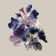 Flowers: Varying degrees of deep indigo, purple-blue, and black/charcoal, contrasting with soft white or pale grey highlights.