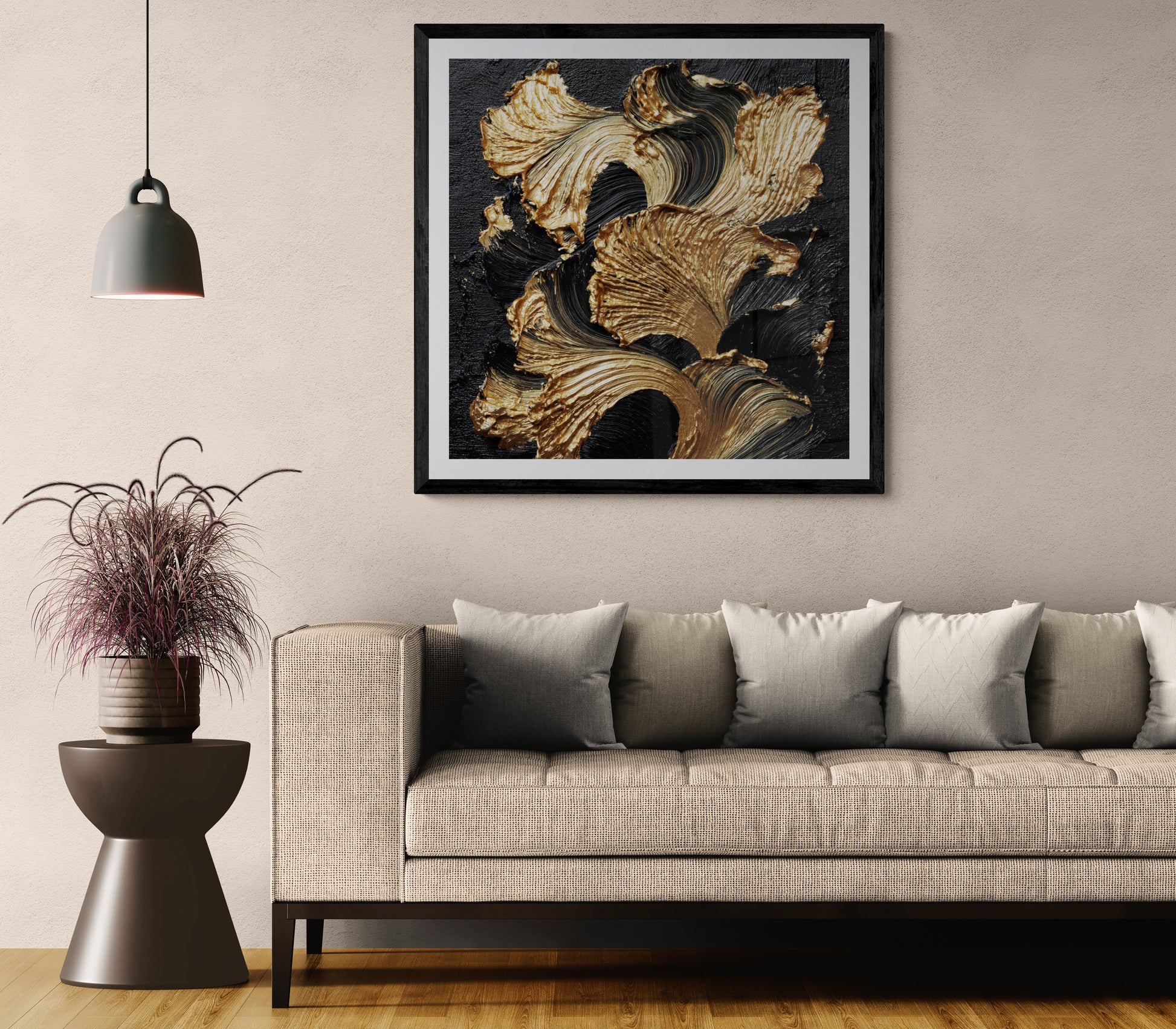 The rich gold tones symbolize luxury and success, while the deep black background adds bold sophistication. The textured movement mimics sculpted brush strokes, giving your wall a gallery-quality designer finish.