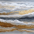 The composition is banded horizontally, with the rough white texture representing the sea foam and the gold and dark blue suggesting the sand and deep water.