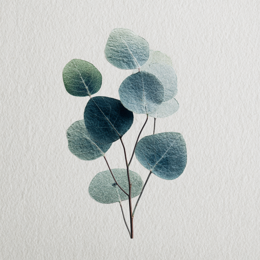 Minimalist botanical artwork featuring eucalyptus leaves watercolor texture clean and natural design