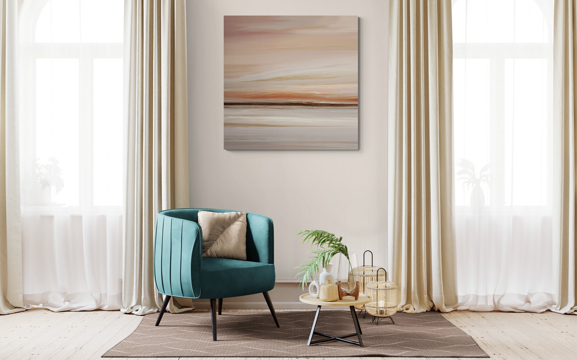 The warm tones and flowing texture create a sophisticated focal point, positioning this as premium minimalist landscape art. Its subtle palette makes it an ideal choice for those seeking refined blush wall art that enhances without overpowering.