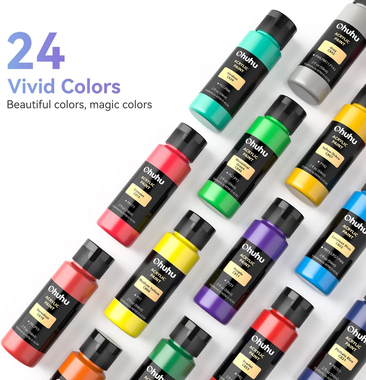 Ohuhu Acrylic Paint Set for Painting 24 Classic Colors 59ml 2oz Bottles