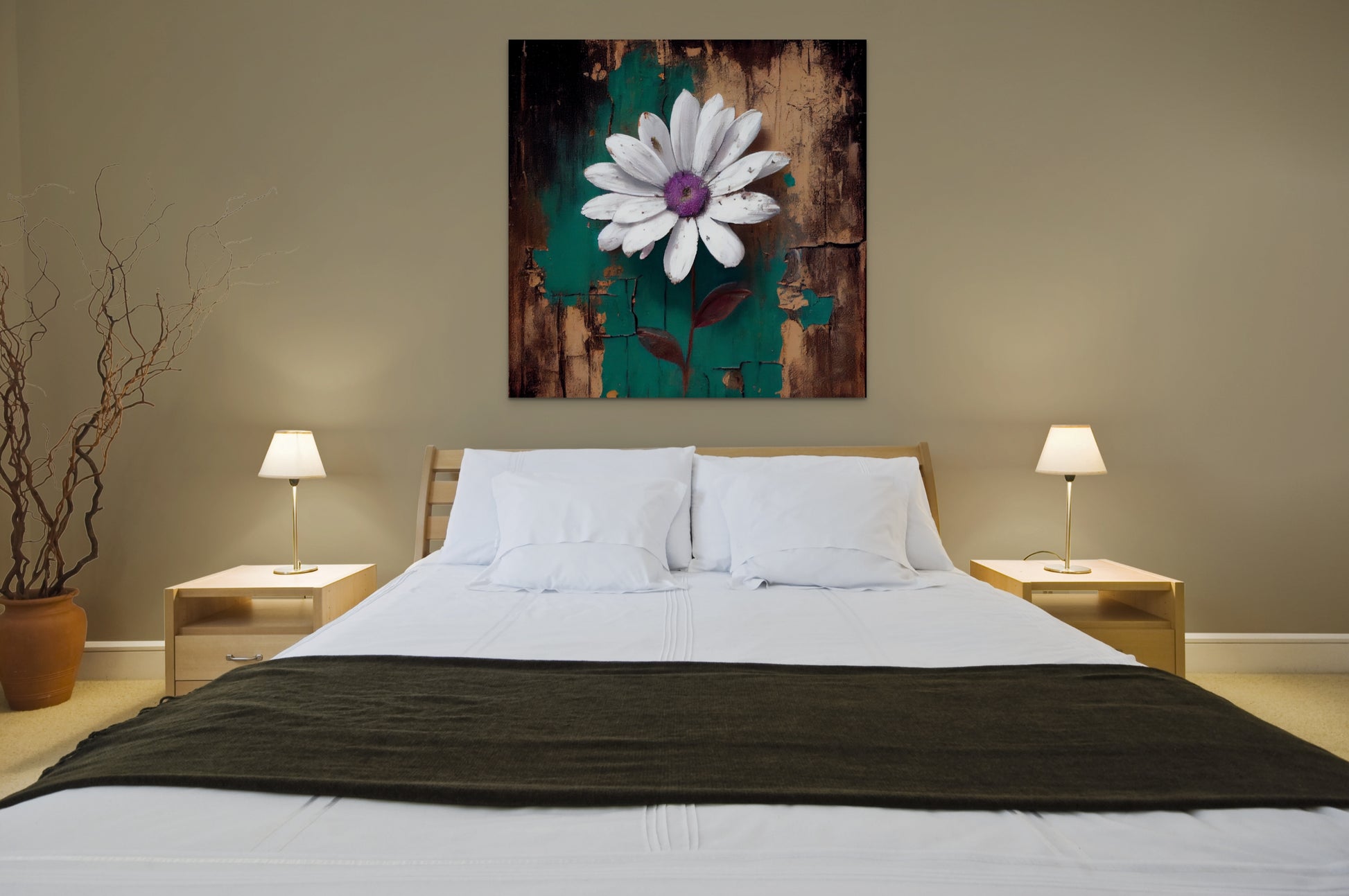 Serene Bloom: A Stunning Oil Painting Print of a White Flower on a Rusty Green Background