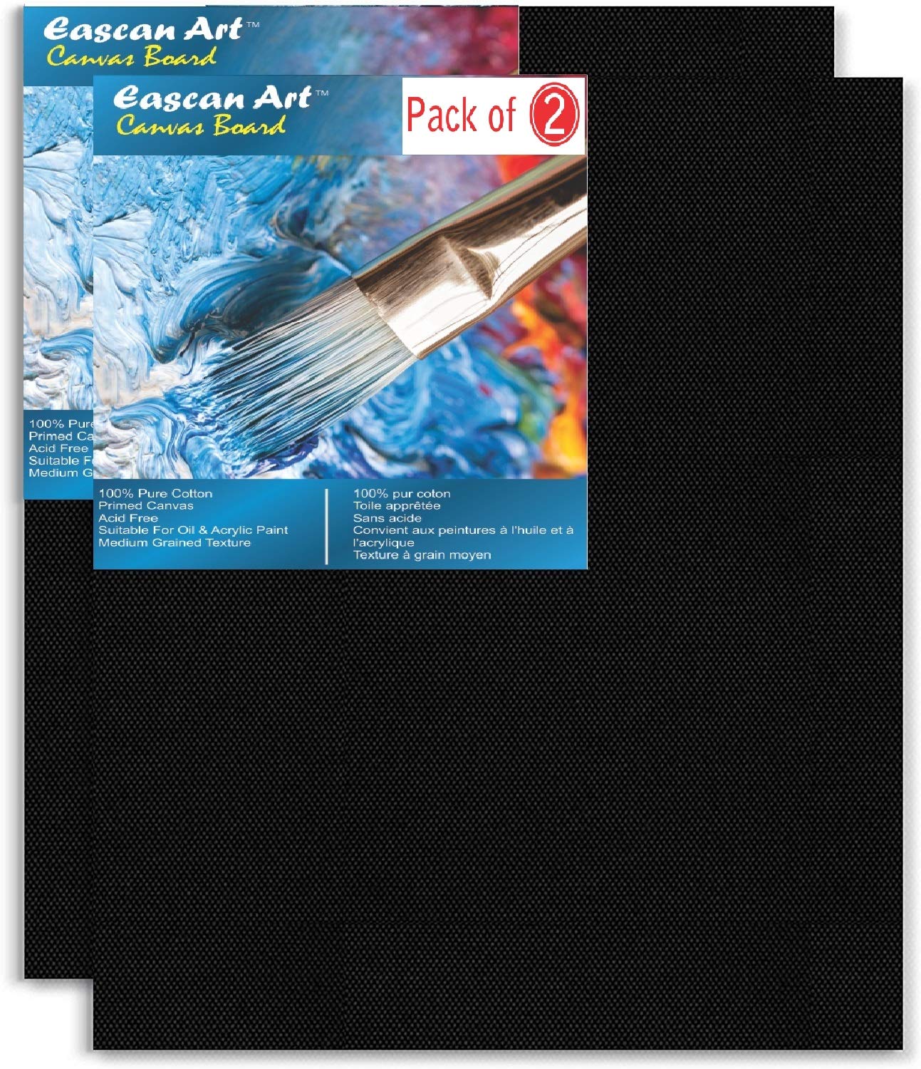 Painting and Sketch Cotton Medium Painting Canvas Board Black, Pack of 2 (12" X 12")