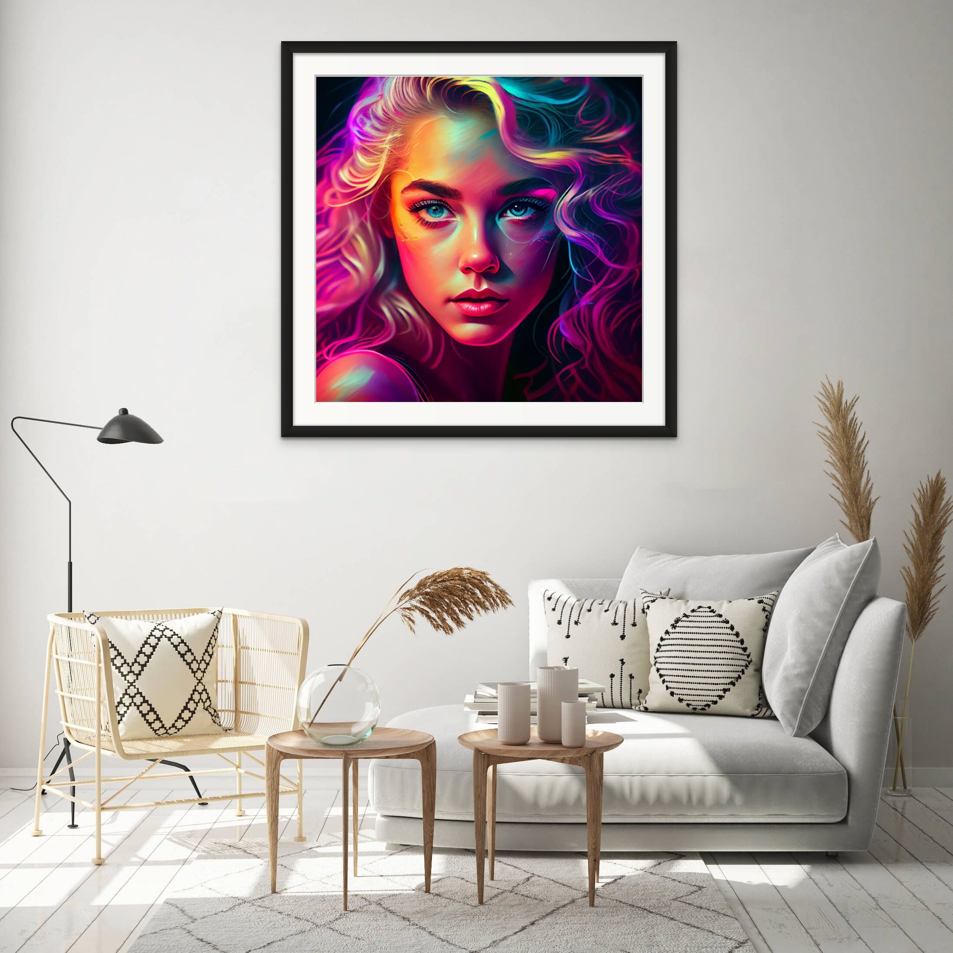 Psychedelic Girl with Beautiful Eyes & Curly Hairs Painting Print for Living or Gaming Room Wall Decoration Purposes