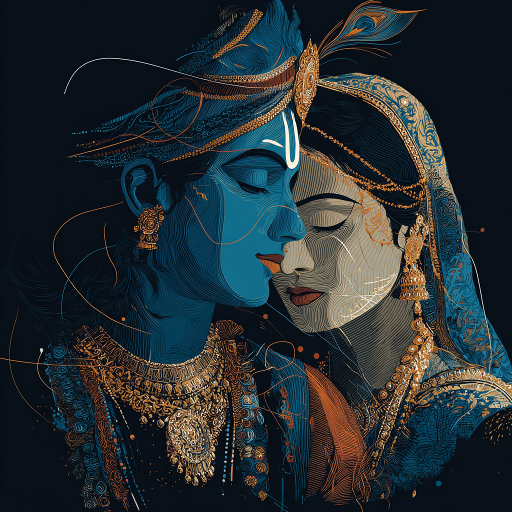 Radha and Krishna in a digital art style reimagining divine love through modern expression