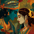 Radha Krishna Wall Art – Divine Love Portrait Canvas Print