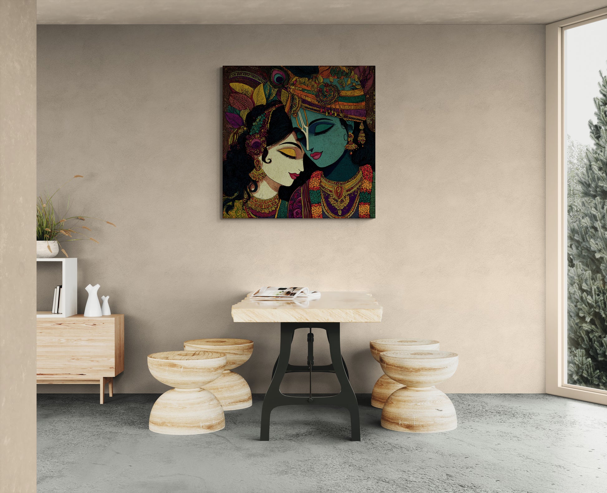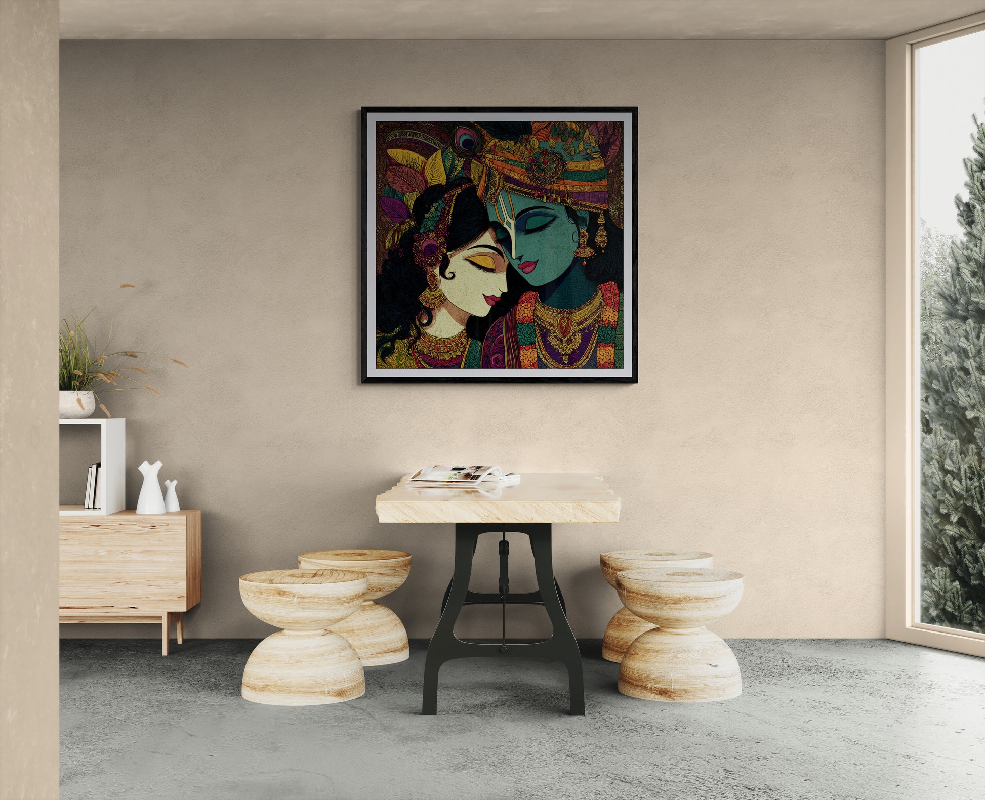 This breathtaking Radha Krishna wall art captures the sacred union of divine love through intricate detail, jewel-toned textures, and royal ornamentation. Krishna’s serene blue presence and Radha’s graceful expression meet in perfect harmony — symbolizing eternal devotion and spiritual balance.