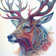 Majestic Marvels: Ultra-Detailed Reindeer Face Pencil Color Print - A Dreamy, Colorful Print