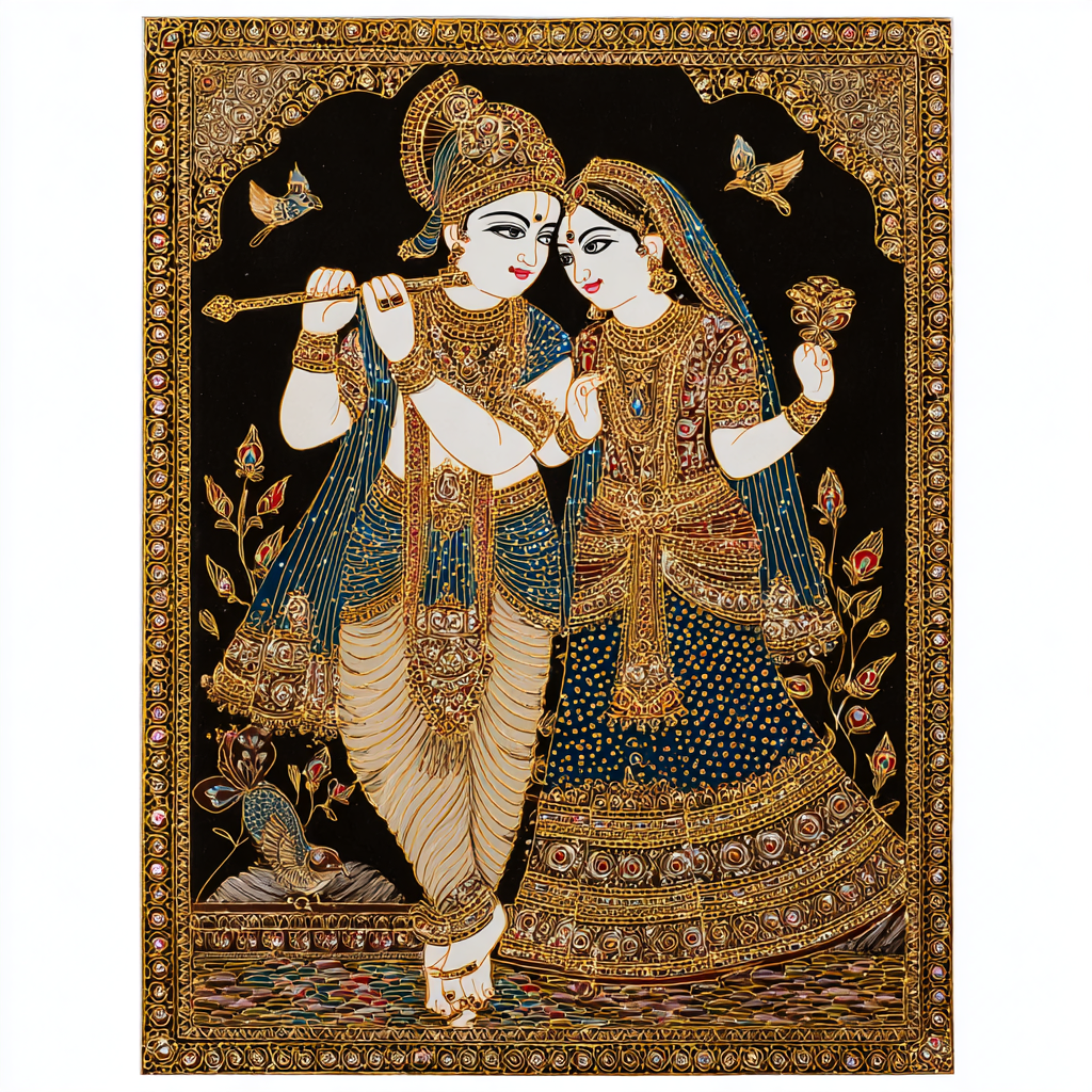 Tanjore painting of Radha Krishna with gold accents