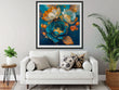 "Teal Blue & Gold Orange Flowers Oil Painting Print"