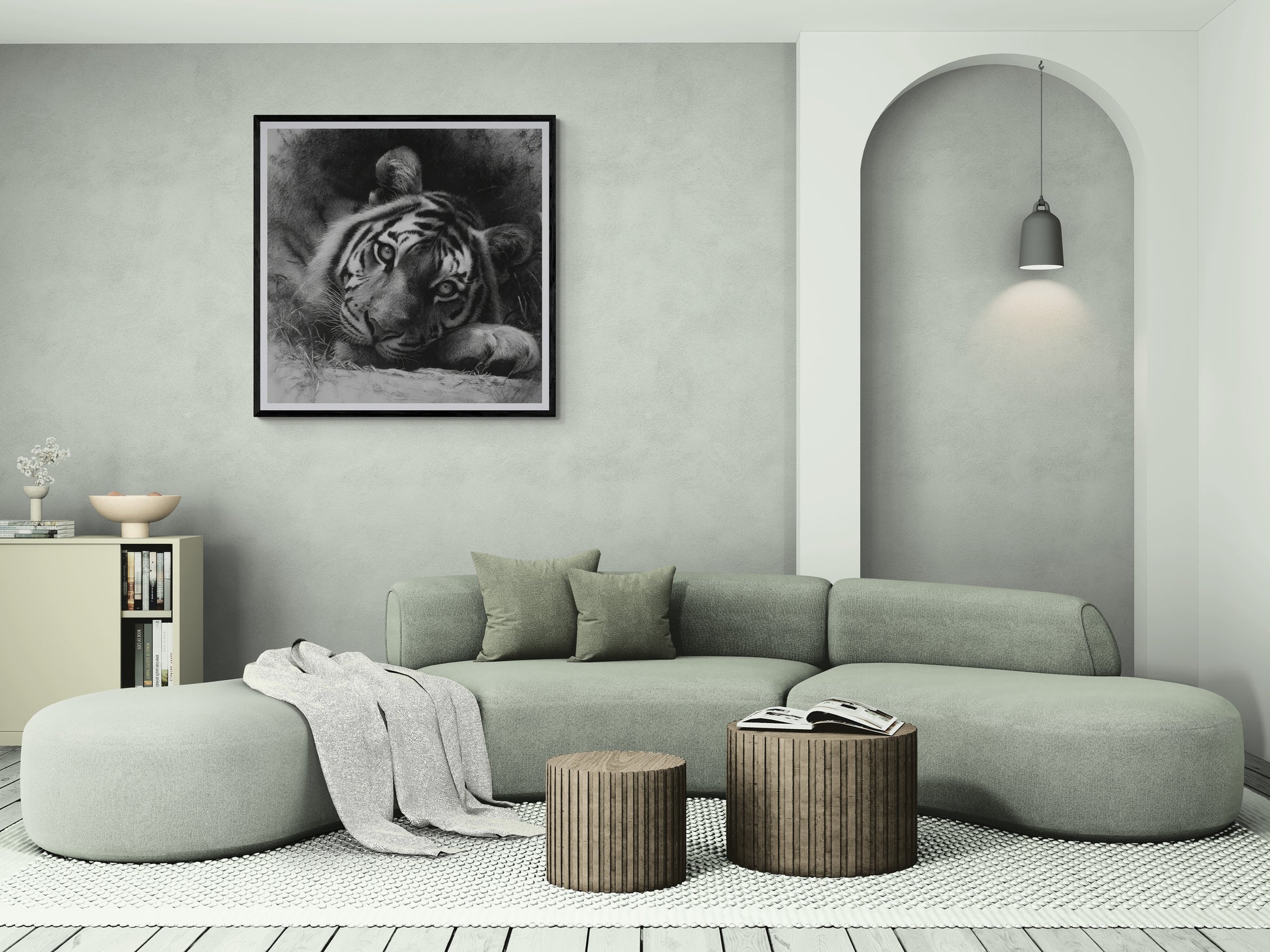 Powerful Serenity: The image captures the inherent strength of the animal even in a moment of rest.