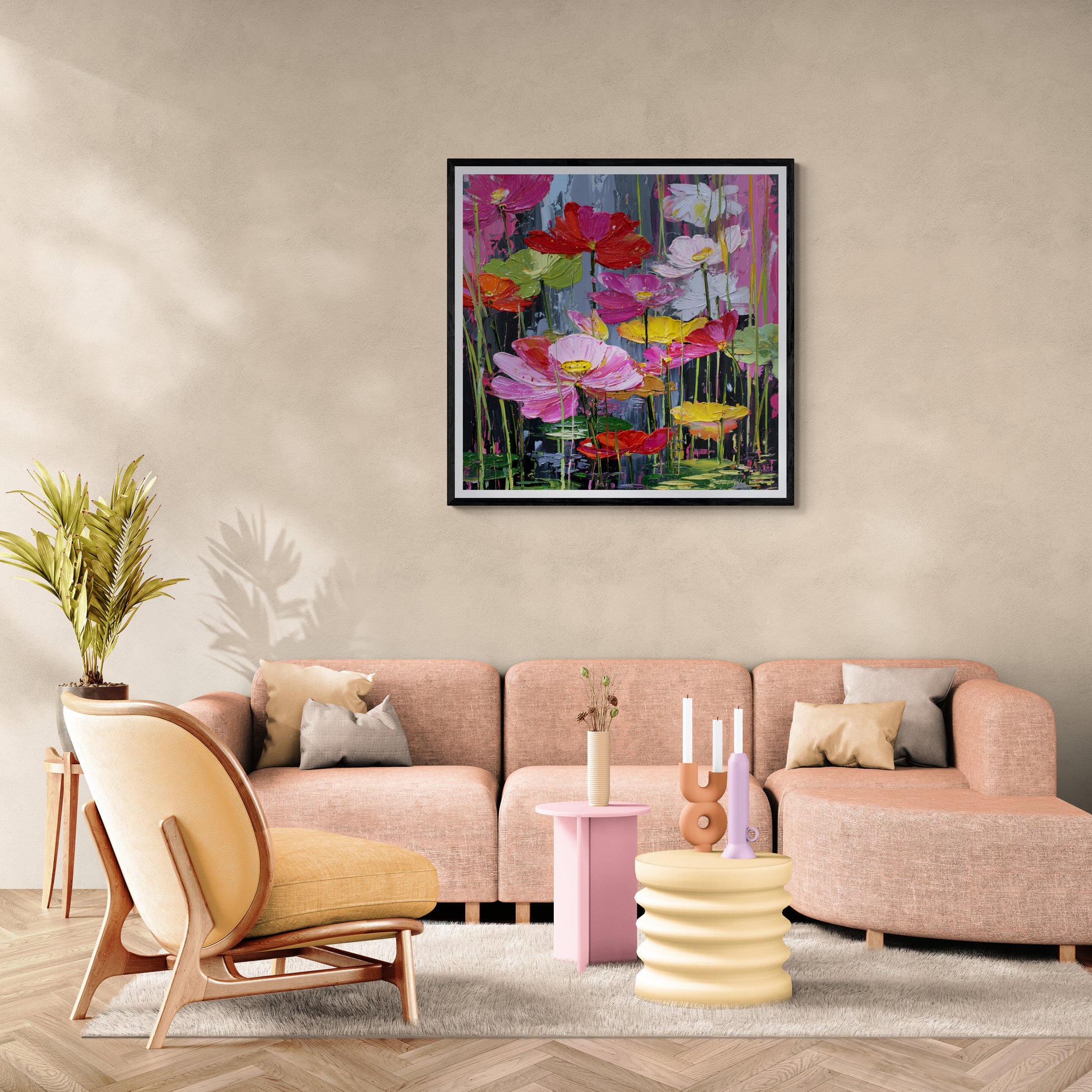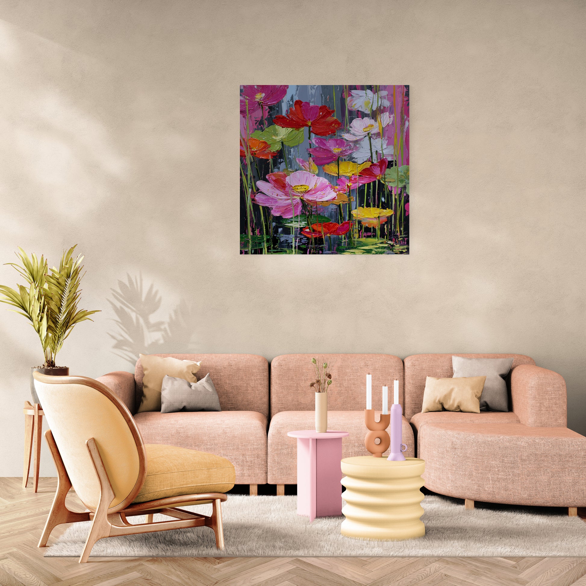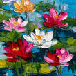 Celebration of Nature: A colorful and joyous representation of flowers blooming in water.
