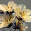 Flowers: Luminous pale yellow and creamy white with shadows in warm sepia and deep grey.