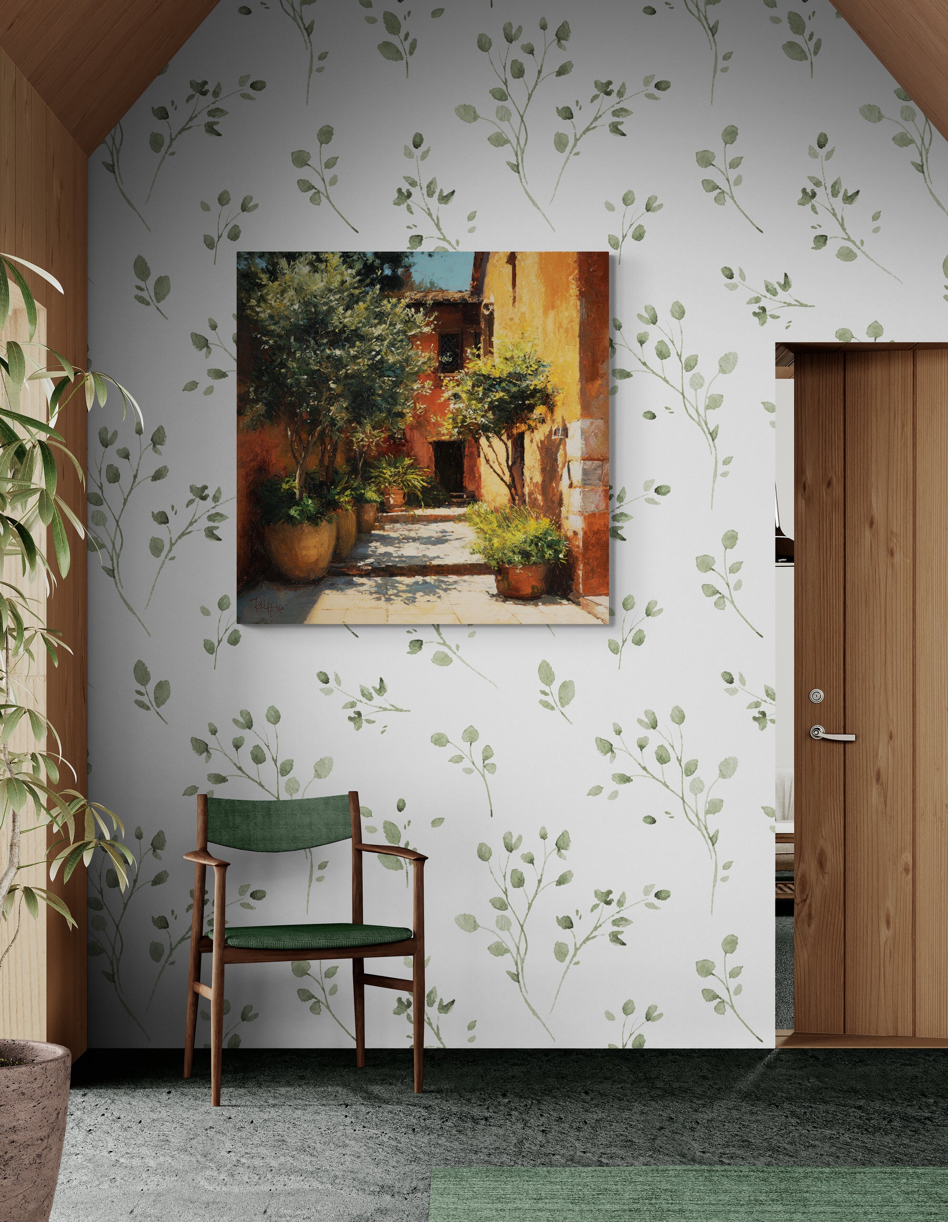 This artwork brings the feeling of golden sunlight, stone pathways, and peaceful garden courtyards directly into your home.