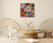 The color palette is rich and saturated, featuring intense jewel tones: fuchsia, deep magenta, fiery orange, daffodil yellow, and bright white, all set against contrasting accents of mint green and lavender. The artwork conveys a powerful sense of abundance and dynamic energy, making it an eye-catching statement piece.