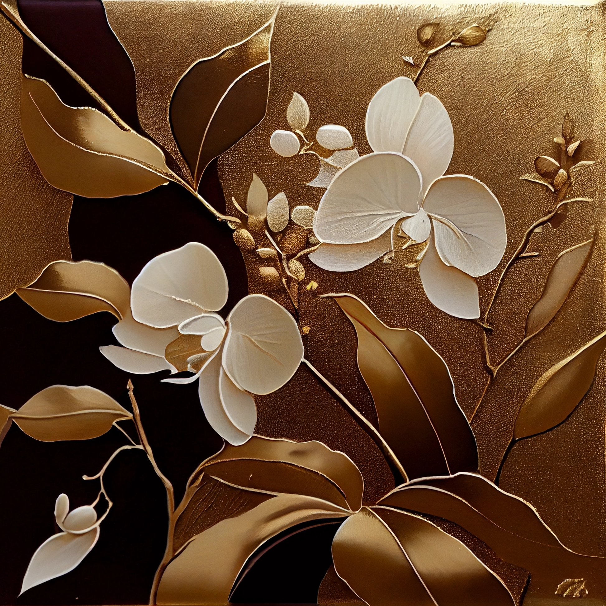 Golden Elegance: White Orchids with Gold Leaf Print
